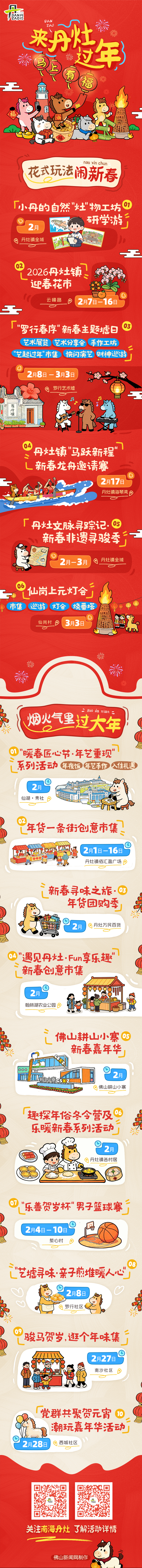 新春佳节将至,丹灶的年味已悄然拉满。春节期间,全镇各村(社区)将轮番上演精彩纷呈的民俗文化活动。苏村拜斗、舞龙醒狮、文化巡游、趣味游园……一系列充满烟火气的特色节目轮番登场,带你沉浸式感受地道的岭南年味,共享欢乐祥和的新春盛宴。