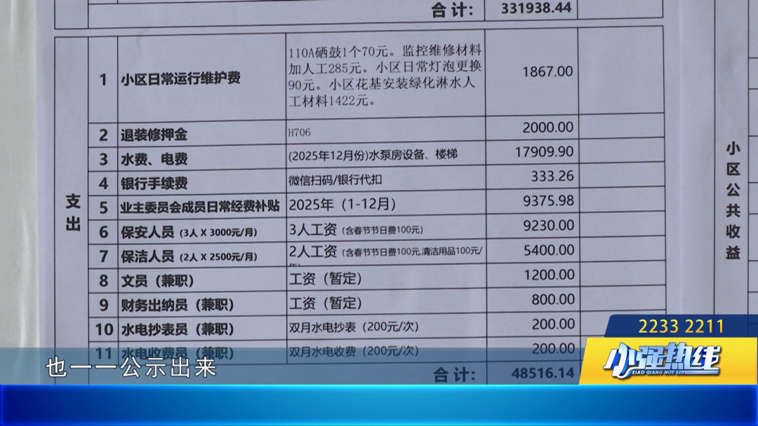 通过规范管理内部70个停车位,华辉花园小区六期每年能产生一笔可观的公共收益。业委会还请来专业的会计管账,每一分钱怎么来的、花到哪里去,都明明白白,收支明细都贴在在小区公告栏,甚至包括每个成员的补贴款项,也一一公示出来。