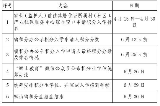 (三)狮山镇积分生受理申请日程安排